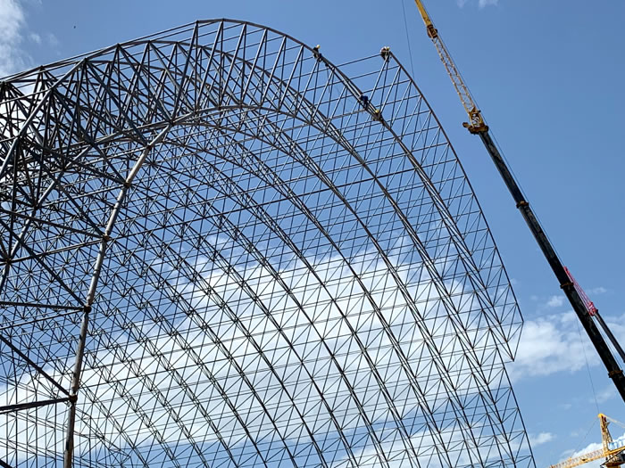 (2)网架加工前应对现场尺寸进行复测,确认无误后方可进行加工、安装;网架制作、运输、安装应遵守《空间网格结构技术规程》JGJ7-2010、《钢网架合肥螺栓球节点》JG/T 10-2009、《钢网架合肥螺栓球节点用高强度螺栓》 GB/T 16939-2016、《钢结构合肥工程合肥施工规范》 GB50755-2012、《钢结构合肥工程施工质量验收标准》 GB50205-2020。